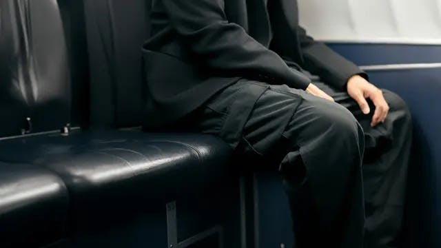 - 車内でも。どんな姿勢でも。パンツをクロップドの丈として、短く開発したのも快適に過ごせるための一つのポイントです。