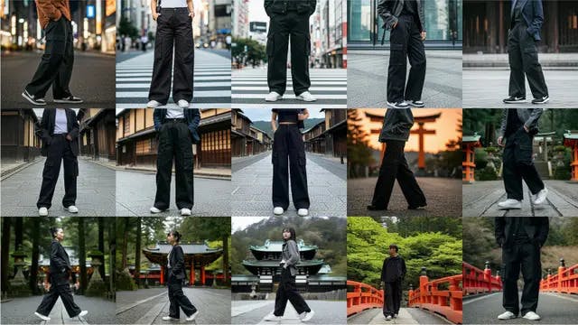 また、カーゴパンツのシーンとして、色々なイメージを作成してみました。 -