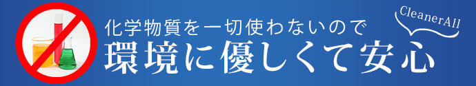 CleanerAllは、界面活性剤などの化学物質を使わずに、100%天然原料(自然成分)でありながら洗浄力にも自信があります! -