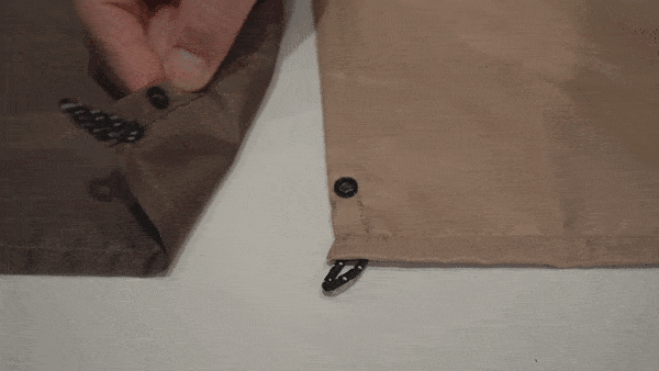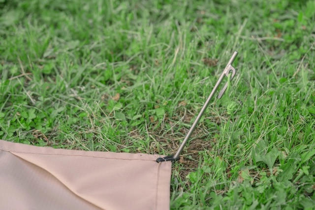A:別途ペグ購入は必要になりますが、ペグ専用止め紐付きです。