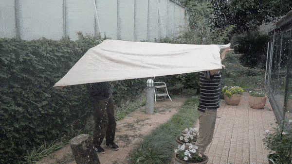 素早く傘代わりにして、雨宿りしよう。 -