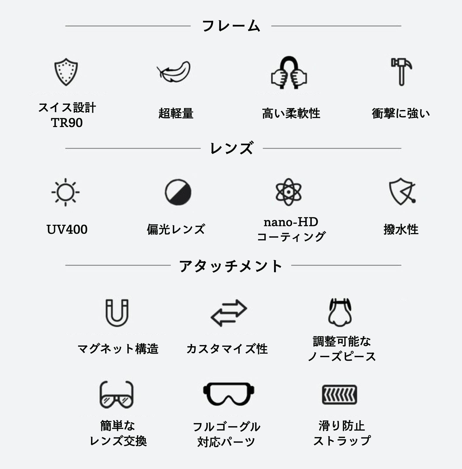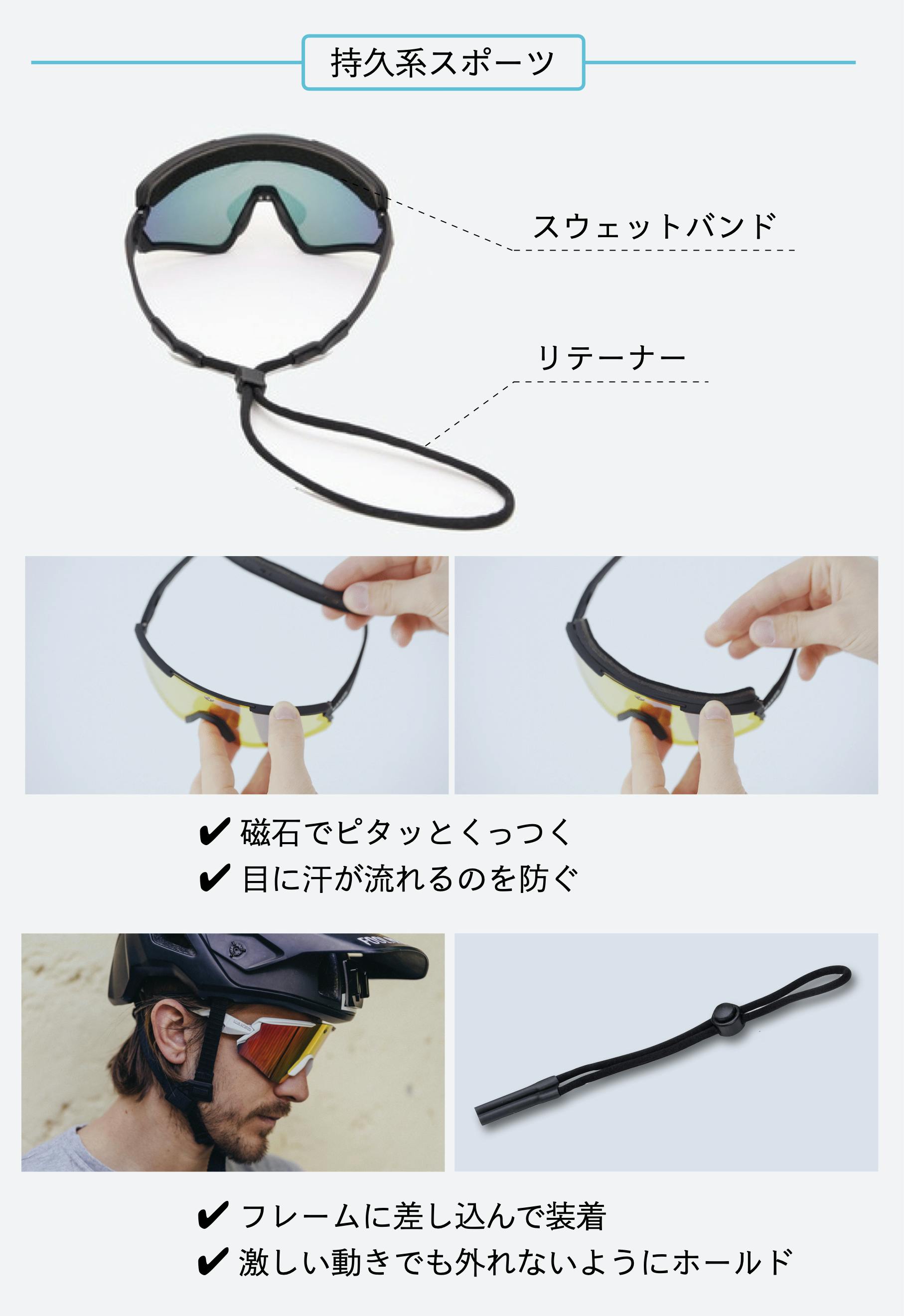 さまざまなアウトドアスポーツに最適なフィット感・クリアな視界・パフォーマンスを提供するサングラスを実現し、見える世界を変えたいという思いが込められています。 -
