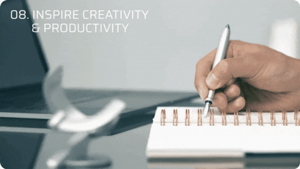 ずっしりとしたちょうど良い持ち心地で、アイデアを書き留めたり、メモを取ったりすることが、まるで呼吸するように自然にできます。 -
