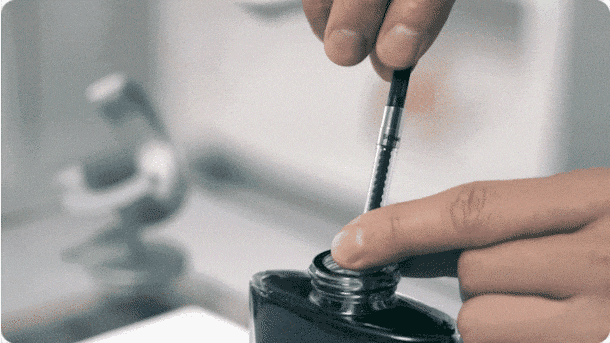 お好きなインク瓶から詰め替えも可能。一回引くだけでインクが入ります。
