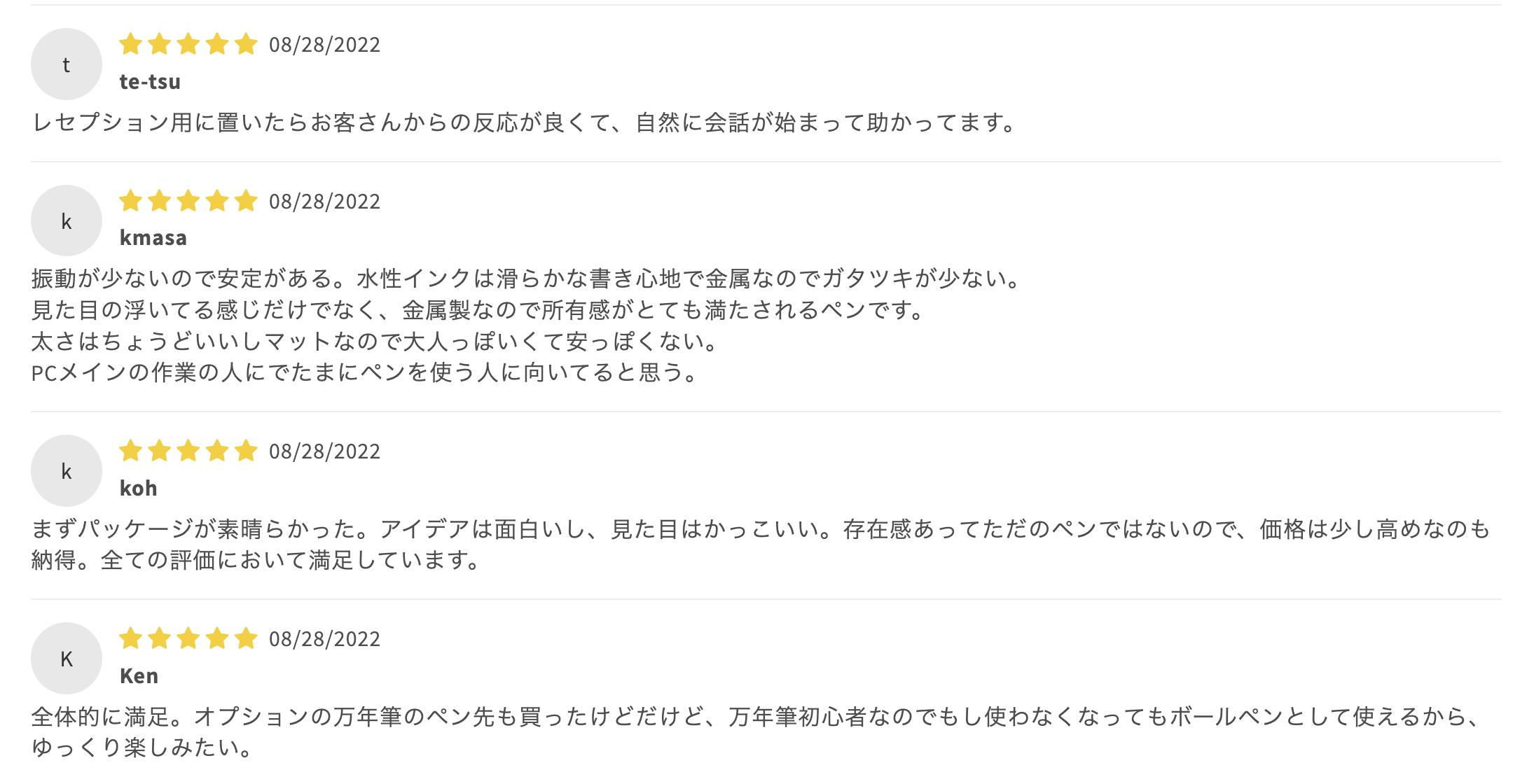 お求めやすい価格で皆様に上質と書き心地をご提供したいと考えているため、商品の仕入れにかかる費用が大半を占めていますが、ブランドの認知度向上と、新たな製品開発のために使用させていただきたいと考えています。
