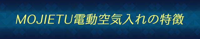 - Mojietu電動空気入れのモーターは、永続使用可能なDCマグネットモーターが、高精度の合金より鋳造した円筒内で直線往復運動を行います。これにより、超速空気注入を実現しました。