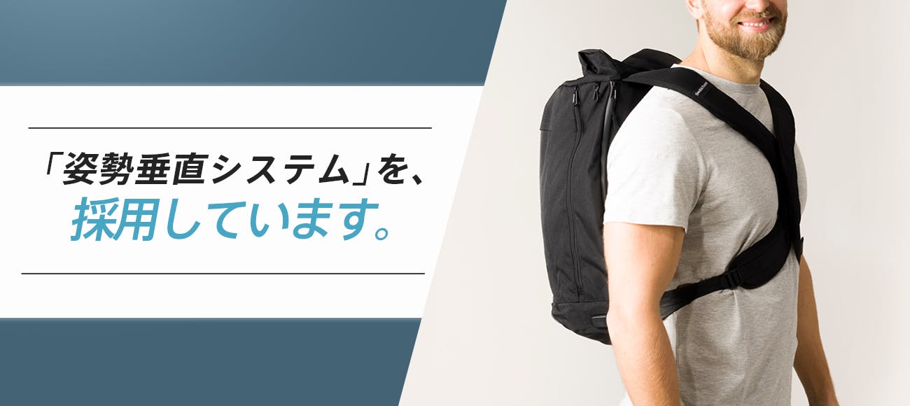 - 正しい姿勢に導く【Vertical Ergonomic Backpack】で移動を軽快に。