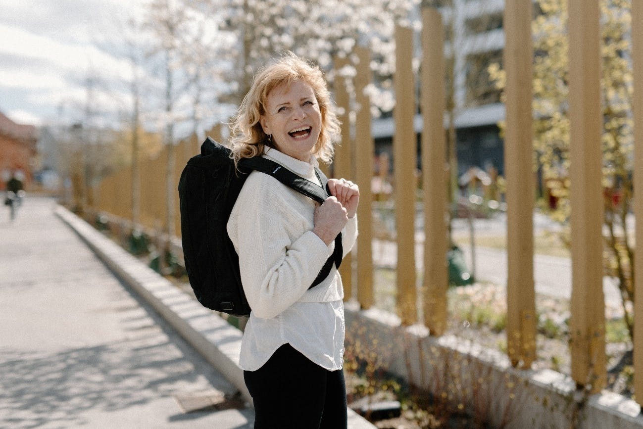 しかし、バックパックを背負うと体のバランスを保つために前のめりの姿勢になりがち。