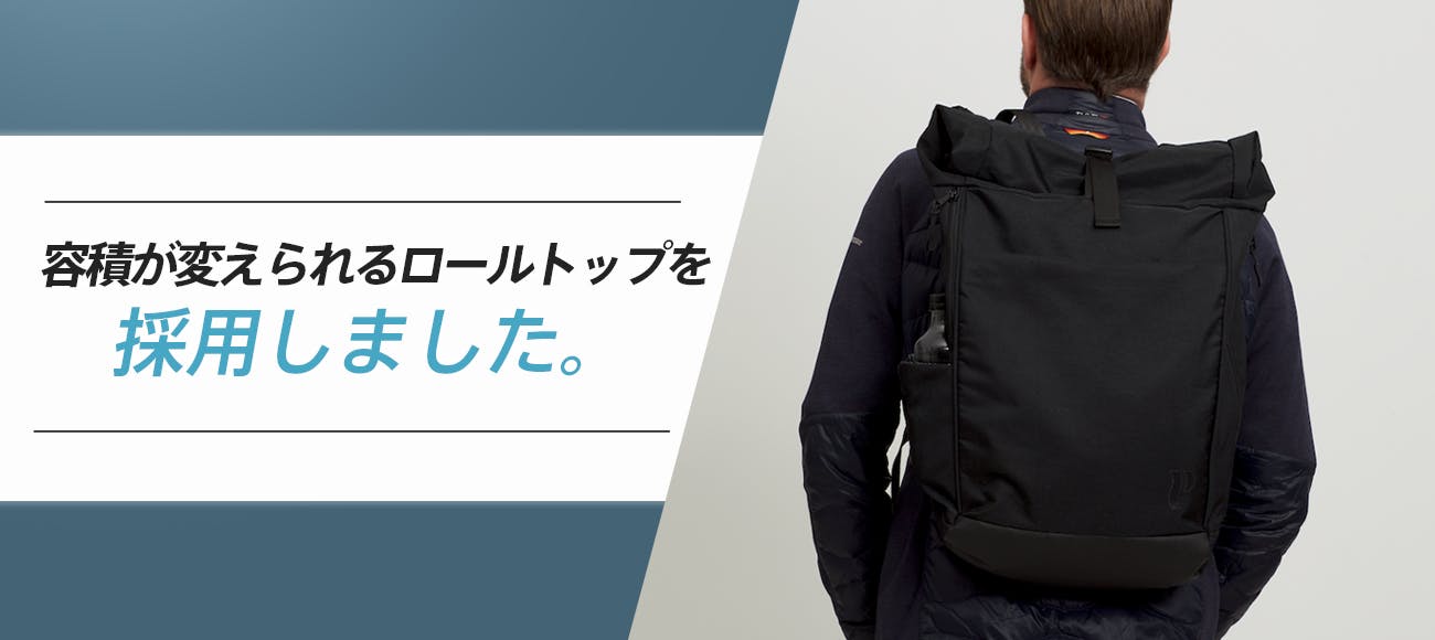 さらにロールトップのバックパックは見た目もスタイリッシュ。