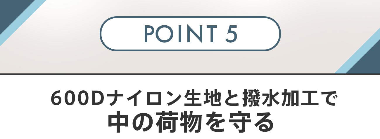 【Vertical Ergonomic Backpack】は機械的強度や耐摩耗性、耐衝撃性に優れたナイロンを600D(デニール)の糸で織り上げた生地を使用しているため大変丈夫。 -