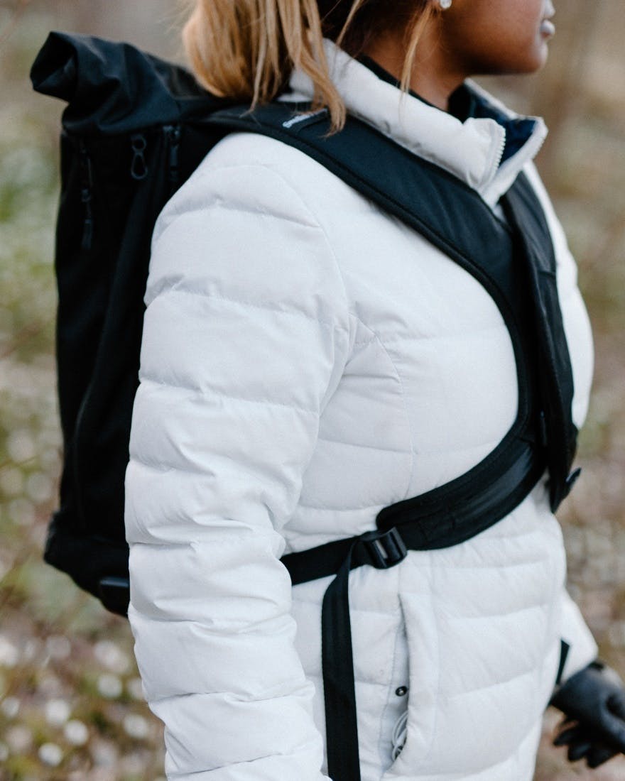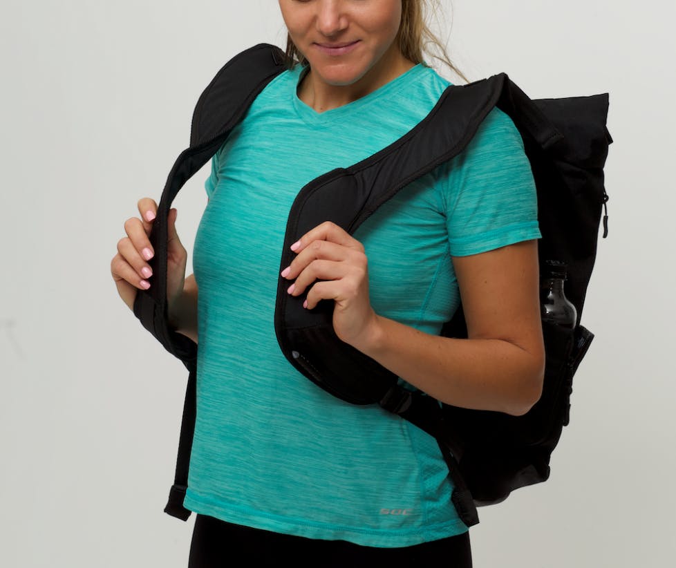 - 1.【Vertical Ergonomic Backpack】を背負い、ストラップの長さを調整してバックパックを体に密着させます。