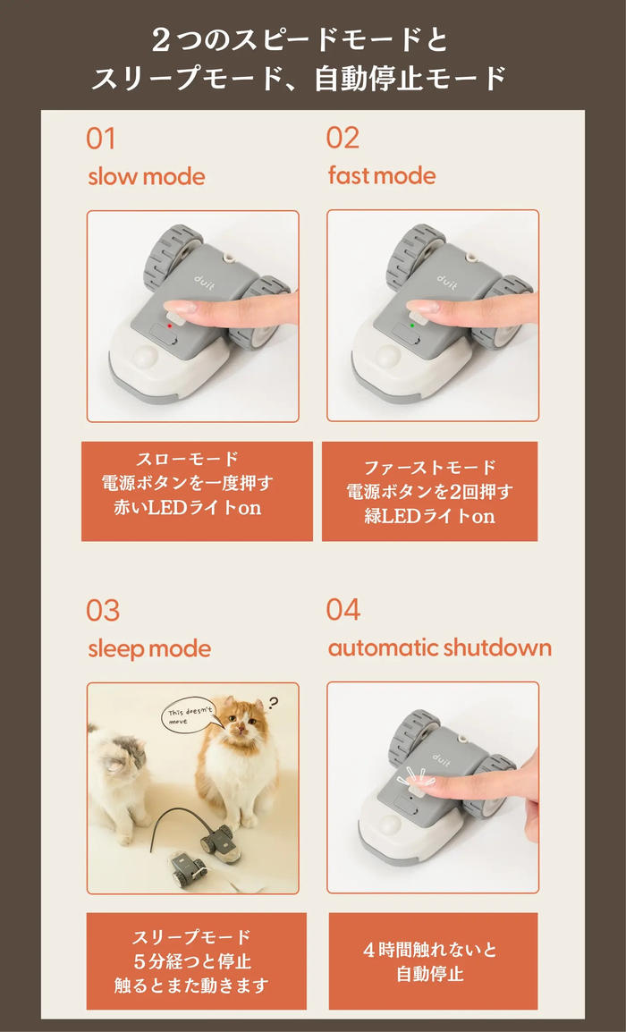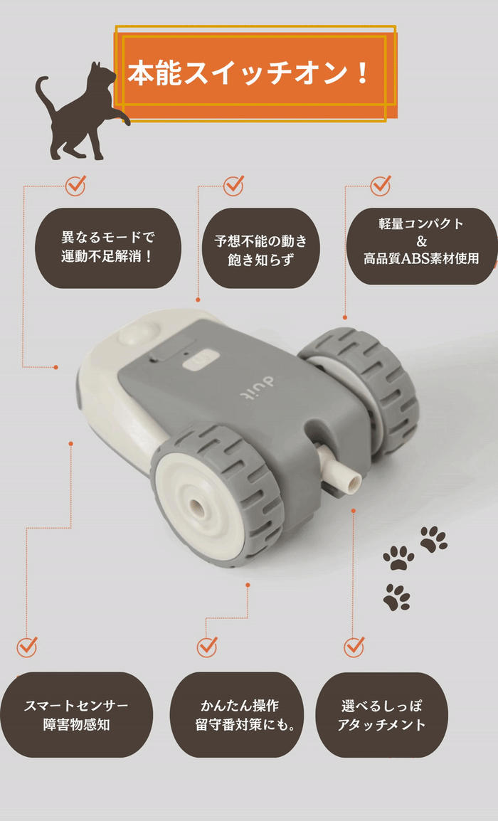 duit mouse botは、世界中の猫を魅了するスマート トイです。いよいよ日本のお客様にご紹介できることを嬉しく思います!その動きは猫の自然な狩猟本能を刺激し、飽きることなく楽しませ続けます。あなたの猫に楽しさを体験させてください 。
