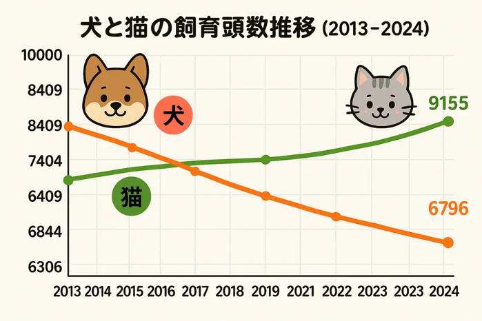 - ご存知でしたか?2017年頃から猫の飼育頭数が犬よりも増えているのだそう。