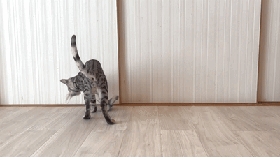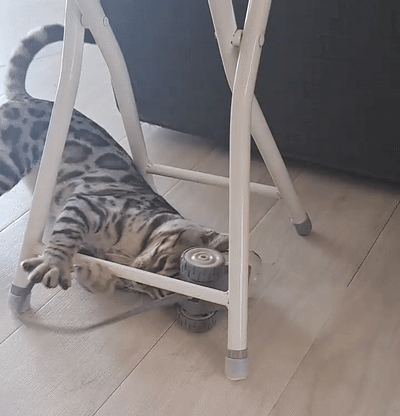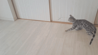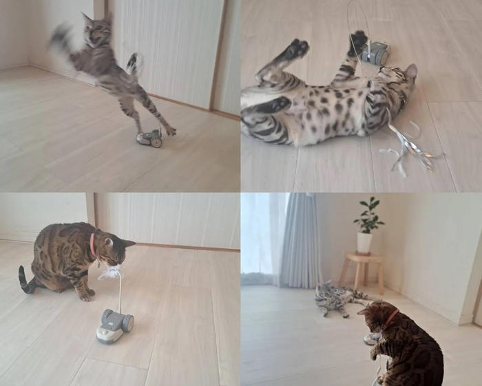 - 2匹のベンガルズはスイッチを入れた瞬間から夢中です。スイッチを入れていなくても揺れるリボンにじゃれて遊んでいます。