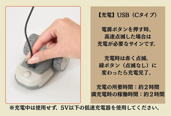 使用しない時は手の届かない場所に保管してください。また、充電中は使用せず、5V以下の低速充電器を使用してください。